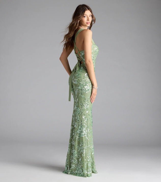 Elegant långklänning med skimrande paljetter, smala axelband och figurnära passform. Finns i flera färger – perfekt för bal, bröllop eller festliga tillfällen.